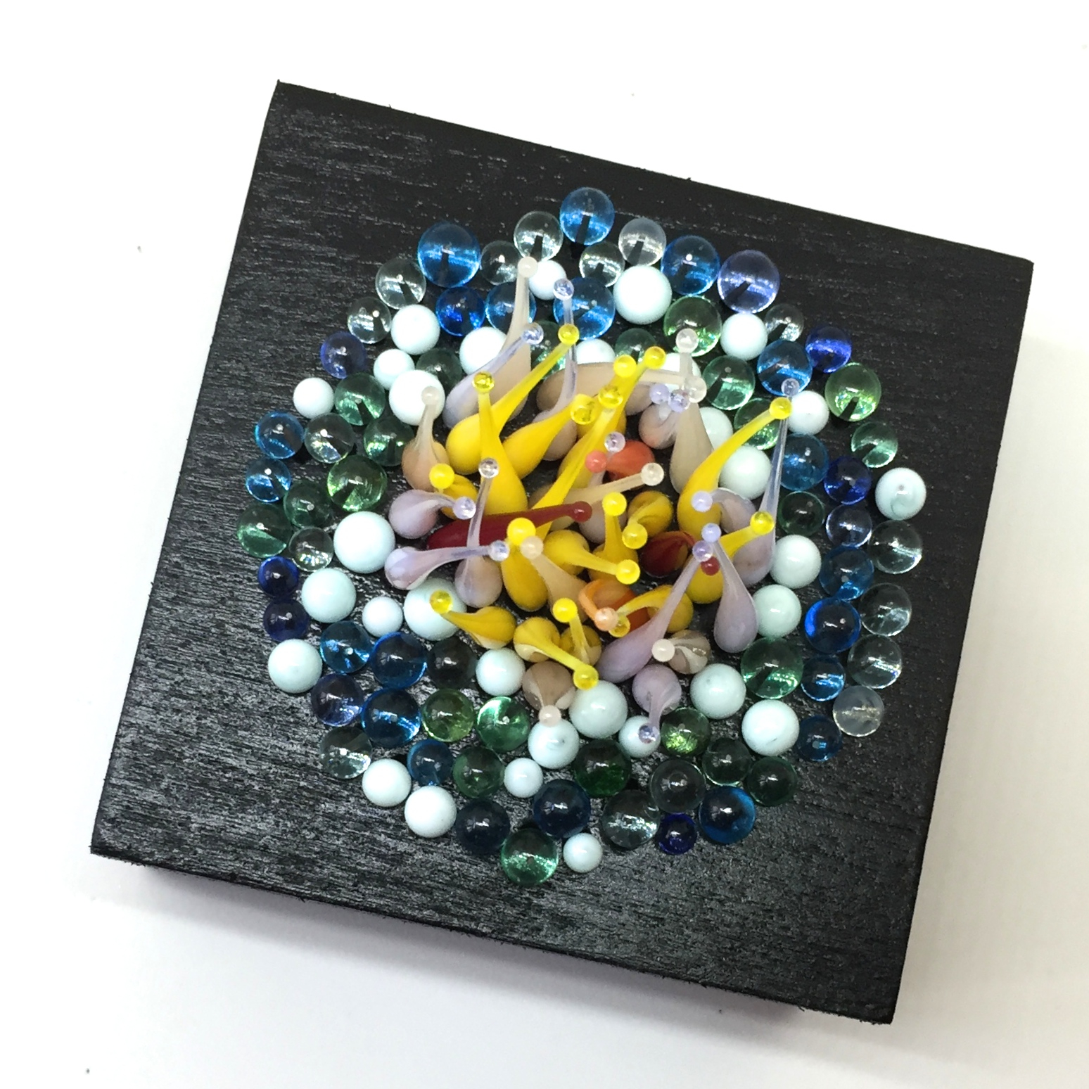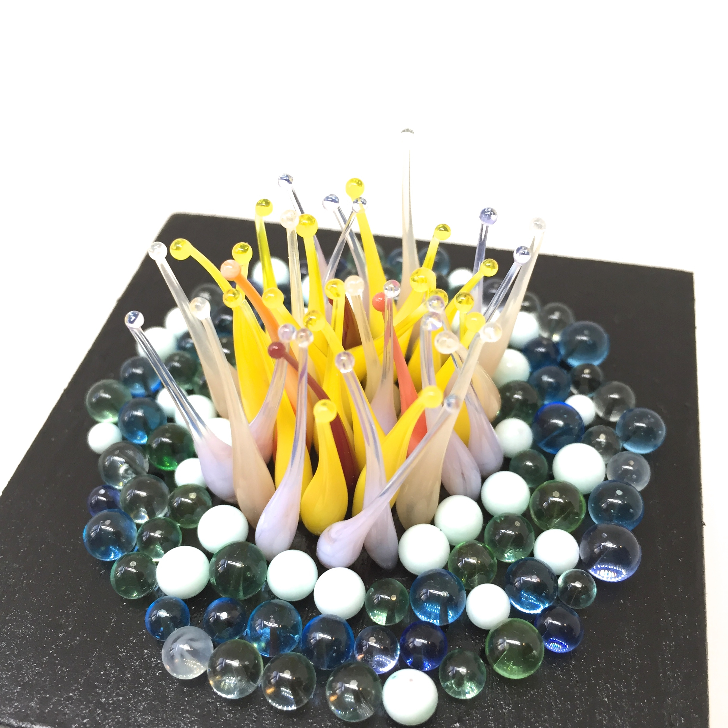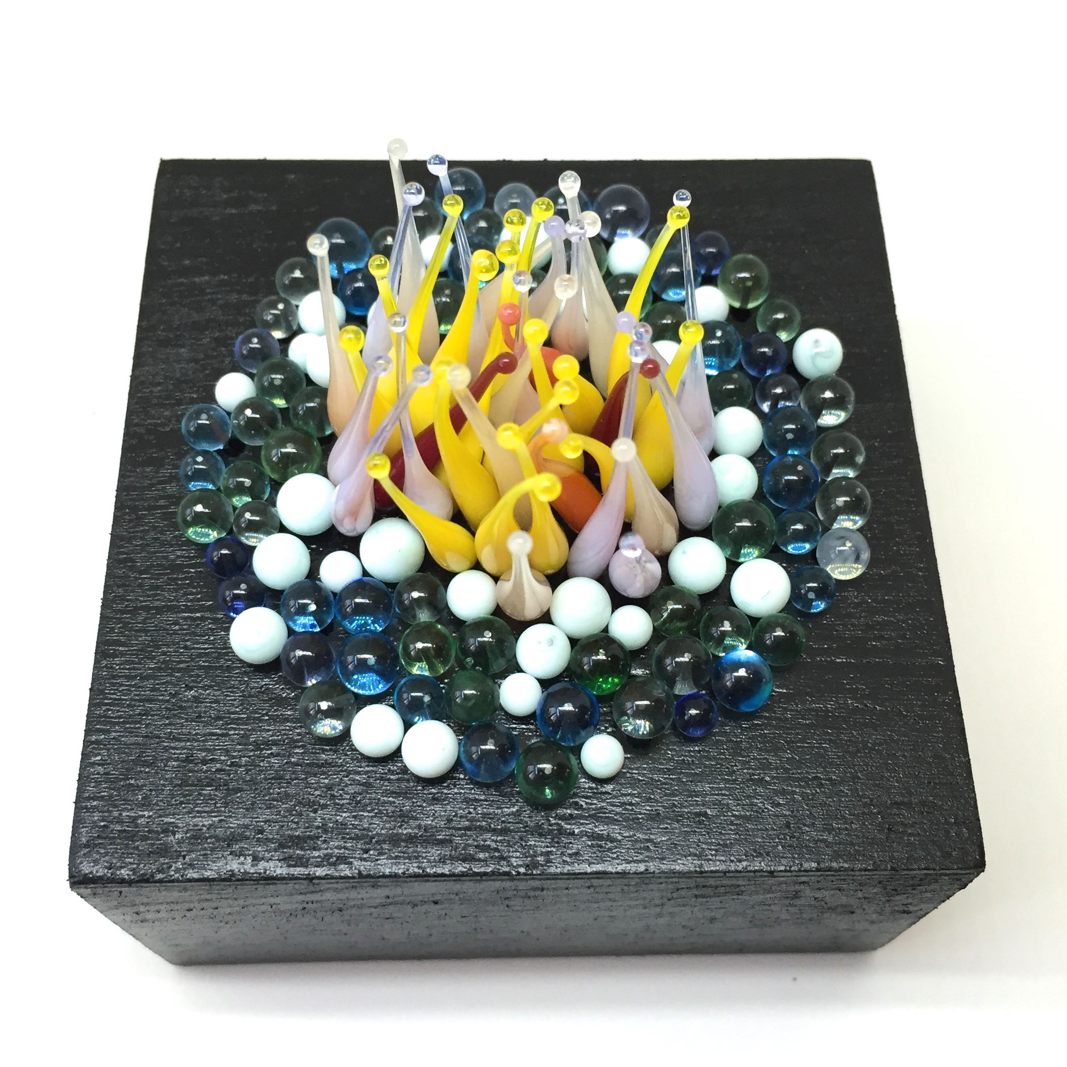 This glass sculpture reminds me of what we would find if we would look for nature in a far far away place, or perhaps from a time before humans roamed the earth. The base is 7 by 7 cm.